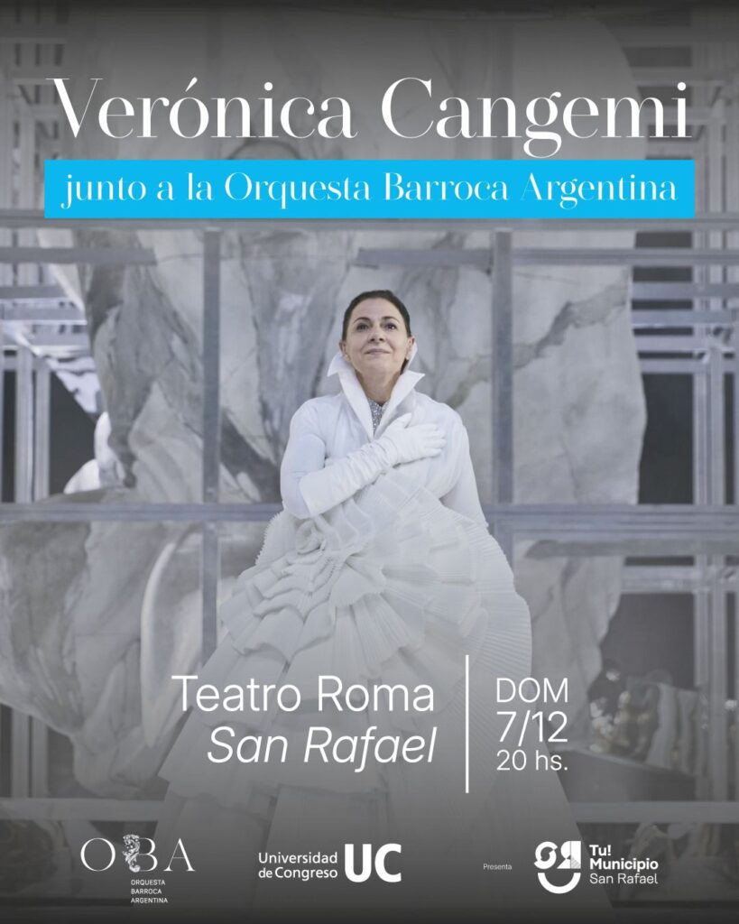 El próximo fin de semana, San Rafael volverá a recibir a una de las máximas exponentes de la música clásica argentina: Verónica Cangemi, que protagonizará un imperdible concierto acompañada de la Orquesta Barroca Argentina.