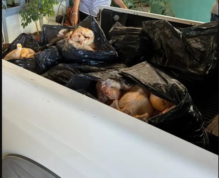 Allí se detuvo un Citroën Berlingo que transportaba aproximadamente 150 kilos de pollo en condiciones totalmente irregulares: sin bolsado, en contacto directo con las jaulas de transporte y con un fuerte olor nauseabundo.