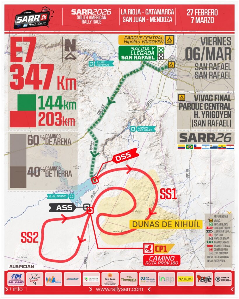 El rally hoy se traslada a las dunas de EL Nihuil con un recorrido de 347 kilómetros, un 60% de arena y un 40% de tierra.